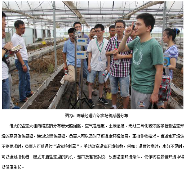 喬司農(nóng)場是浙江省首家集規(guī)模種植、科研生產(chǎn)、網(wǎng)絡銷售、宅配服務為一體的國家級農(nóng)業(yè)綜合開發(fā)綠色蔬菜生產(chǎn)基地。2014年4月中旬,托普物聯(lián)網(wǎng)系統(tǒng)在喬司農(nóng)場成功搭建運行。 隨后的8月2日,銷售部全體員工在時任營銷經(jīng)理陳曦的帶領(lǐng)下前往喬司農(nóng)場,觀看農(nóng)場內(nèi)的物聯(lián)網(wǎng)系統(tǒng)運行情況。