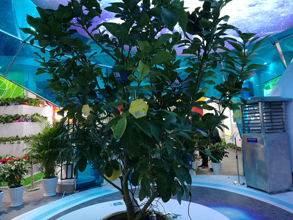 展會(huì)現(xiàn)場(chǎng)掛上傳感器的文旦樹