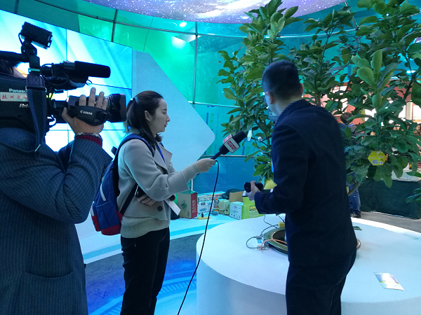 “在這棵文旦樹上,我們安裝了無線葉面溫度傳感器、光照強(qiáng)度傳感器、果實(shí)膨大傳感器。通過這些傳感器采集傳輸?shù)臄?shù)據(jù),我們就能知道整個(gè)樹的生長秘密”。展會(huì)現(xiàn)場(chǎng),現(xiàn)代農(nóng)業(yè)與信息化的互融發(fā)展,吸引浙江衛(wèi)視、杭州電視臺(tái)、蕭山日?qǐng)?bào)、舟山電視臺(tái)、金華電視臺(tái)等記者前來采訪。