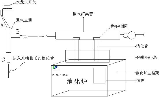 為提高蛋白質含量測定的檢測速度,其關鍵首先要加速樣品消化煮解時間,KDN-04C-4孔消化爐,由于采用井式陶瓷電加熱消煮方式,可單獨對單個孔或多個孔加熱,消化管連同管內所注入的20ml硫酸及試樣置入井式陶瓷爐內加熱消煮,取得較佳熱效應,消化管內溢出的SO2等有害氣體,通過消化爐上的排污管經抽吸泵從水中排入下水道,有效地抑制有害氣體的外逸。