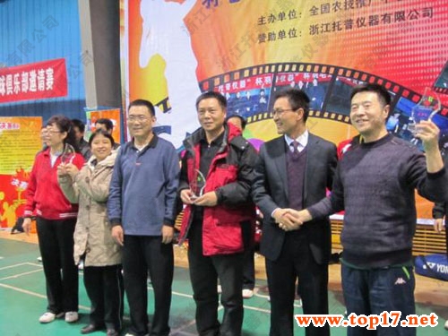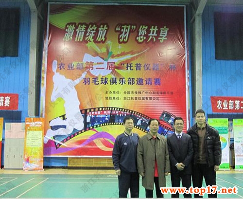 由全國農(nóng)技推廣中心羽毛球俱樂部主辦、浙江托普儀器有限公司全程贊助承辦的第二屆農(nóng)業(yè)部“托普儀器”杯羽毛球俱樂部邀請賽于2011年12月24日在北京貝特羽毛球館隆重舉行。本次比賽由農(nóng)技推廣中心杭大鵬書記主持,浙江托普儀器有限公司陳渝陽總經(jīng)理在開幕式上致辭。過程中眾位農(nóng)業(yè)部領(lǐng)導(dǎo)始終圍繞“激情綻放,羽您分享”的宗旨,以“開展文體活動(dòng),推進(jìn)文化建設(shè)”為主題進(jìn)行發(fā)言。并且賽后陳渝陽總經(jīng)理為獲獎(jiǎng)人員頒發(fā)了獎(jiǎng)項(xiàng)。