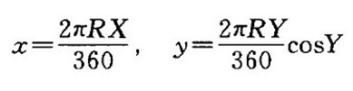由于地球是一個橢球,為了精確計算距離或面積,一般采用投影的方式轉換成平面坐標。在我國,對于大比例尺的地圖通常采用高斯一克呂格投影進行轉換,然而投影法計算十分復雜,難以在單片機中實現。為了簡化計算,我們將地球視為正球體。取地球半徑為6371116m,則可轉換成平面坐標: