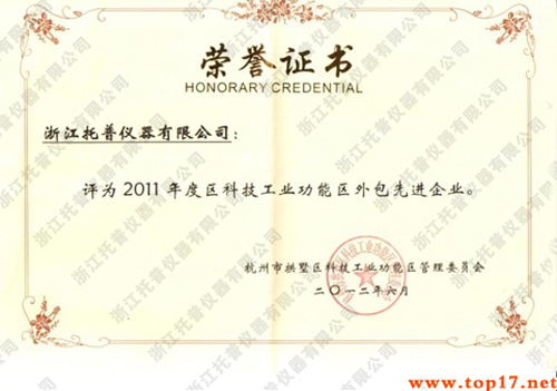 熱烈祝賀浙江托普儀器有限公司被評為2011年度區(qū)科技工業(yè)功能區(qū)外包先進企業(yè)!