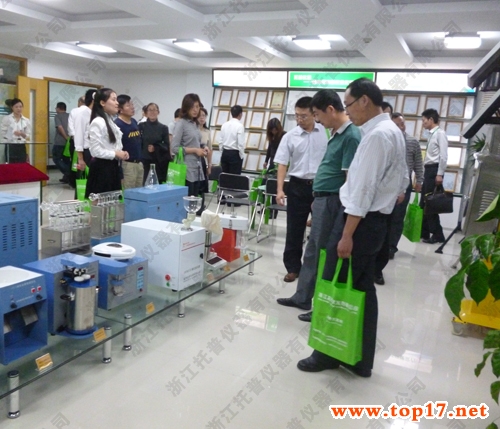 圖為:全國各地種子檢驗領(lǐng)導(dǎo)專家參觀浙江托普儀器有限公司