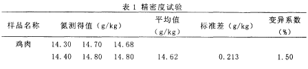 對不同種類的肉類樣品,分別用半微量定氮法和自動定氮儀測定抨發性鹽基氮含址,結果基本一致,經配對檢驗,P> 0.05,證明該兩種方法測定結果無顯著性差異,符合方法的要求。