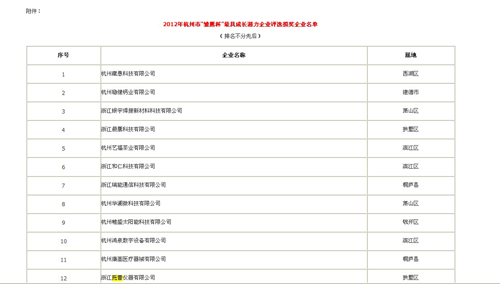 根據(jù)《杭州市科技型初創(chuàng)企業(yè)培育工程“雛鷹杯”評(píng)比獎(jiǎng)勵(lì)辦法》,杭州市科學(xué)技術(shù)委員會(huì)開展了2012年杭州市“雛鷹杯”最具成長潛力企業(yè)評(píng)選活動(dòng)。經(jīng)過推薦、初評(píng)、終評(píng)等評(píng)選環(huán)節(jié),現(xiàn)將浙江托普儀器有限公司列為2012年杭州市“雛鷹杯”最具成長潛力企業(yè)。