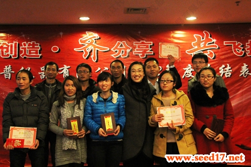 圖為:公司營(yíng)銷(xiāo)總監(jiān)陳麗婷與優(yōu)秀員工合影