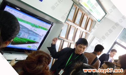 圖為:托普儀器技術人員為參觀者講解物聯網知識