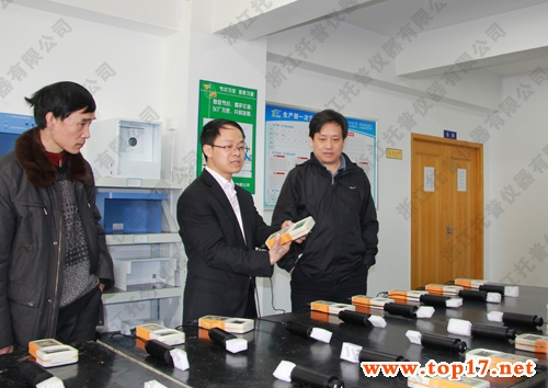在托普的實驗中心,各位專家領導仔細地參觀了陳列的各類土壤檢測儀器,參觀過程中非常關注固定式無線多點土壤墑情監測儀、便攜式土壤墑情速測儀、土壤養分速測儀等,尤其對托普最新研發出來的便攜式農業氣象監測系統和便攜式無線墑情監測儀十分感興趣。這兩個儀器集合了固定式無線多點土壤墑情監測儀和便攜式土壤墑情速測儀的優點,既可以隨身攜帶,十分便攜,也可以通過GPRS無線傳輸,將數據上傳至網絡,工作人員通過電腦就可查詢所采集的數據。