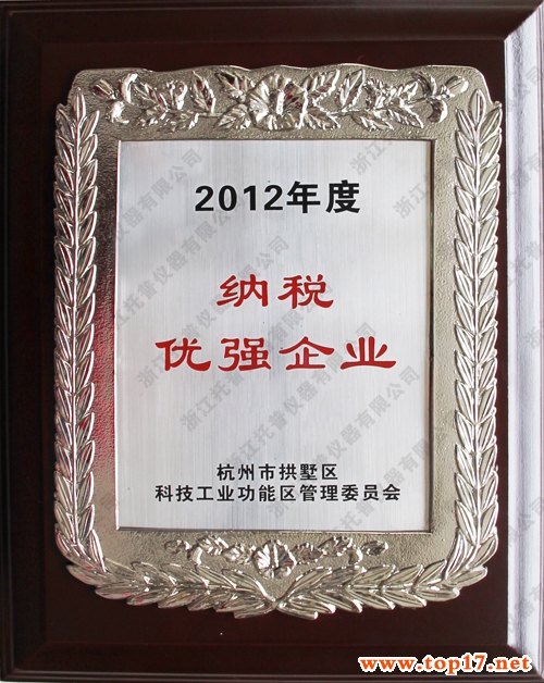 為進(jìn)一步深入落實杭州市扶優(yōu)扶強(qiáng)政策,提高企業(yè)的整體實力和經(jīng)濟(jì)水平,根據(jù)杭州市拱墅區(qū)科工區(qū)[2012]13號文件精神,杭州市拱墅區(qū)科技工業(yè)功能區(qū)管委會研究決定表彰浙江托普儀器有限公司為2012年“納稅優(yōu)強(qiáng)企業(yè)”。