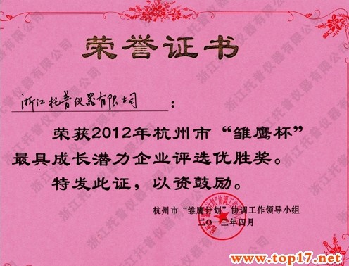 應(yīng)杭州市科學(xué)技術(shù)委員會(huì)邀請,昨日下午于浙江省廣電總局演播室,公司總經(jīng)理陳渝陽參加了“2012年杭州市‘雛鷹杯’最具成長潛力企業(yè)“評選總決賽及頒獎(jiǎng)典禮。浙江托普儀器有限公司榮獲“雛鷹杯”最具成長潛力企業(yè)12強(qiáng)殊榮。