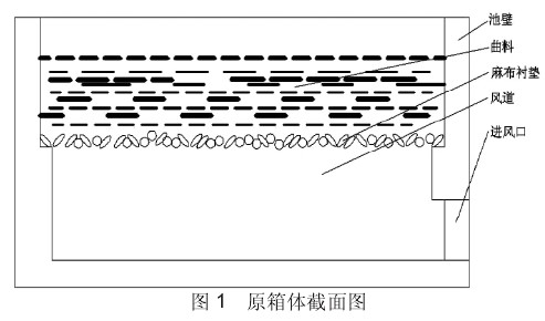工作時,由于曲料對風(fēng)的阻礙作用,氣流在箱體中形成靜壓。在曲料底層與頂層風(fēng)壓差的作用下,形成穩(wěn)定的通過曲料的氣流供給新鮮空氣同時帶走多余熱量。
