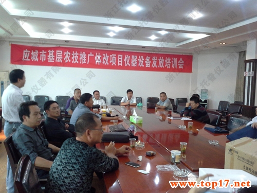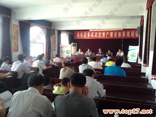 2013年9月14日,山東省聊城市“陽谷縣基層農(nóng)技推廣體改項(xiàng)目儀器設(shè)備發(fā)放培訓(xùn)會議”在陽谷縣農(nóng)業(yè)局會議室召開,農(nóng)業(yè)局楊艾勤書記、農(nóng)技推廣中心王振東副主任以及15個鄉(xiāng)鎮(zhèn)農(nóng)技站站長以及技術(shù)員,共計40余人出席會議。托普儀器作為儀器提供商出席會議。