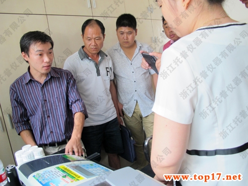 圖為:托普儀器技術(shù)人員現(xiàn)場講解儀器操作步驟