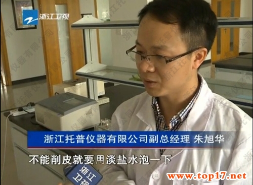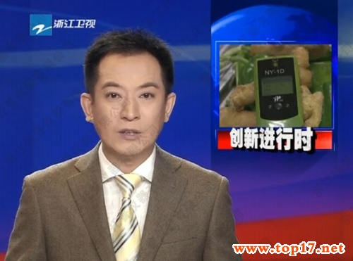 當(dāng)晚,主持人播報道:日前媒體曝光的“毒生姜”事件,再次引發(fā)了人們對食品安全的集中關(guān)注。面對農(nóng)產(chǎn)品上看不能見的農(nóng)藥殘留,怎樣才能快速鑒定,保證舌尖上的安全呢?浙江托普儀器有限公司的農(nóng)藥殘留速測儀就能幫你解決這個問題。