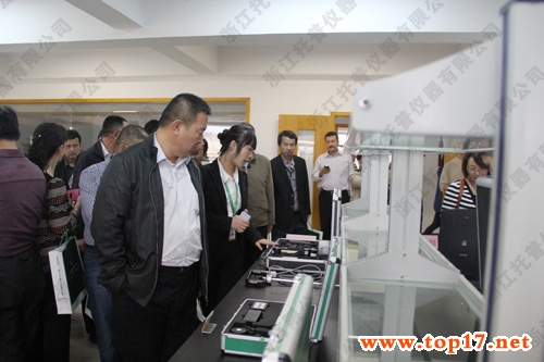 圖為:托普儀器陳渝陽總經理向嘉賓講解產品