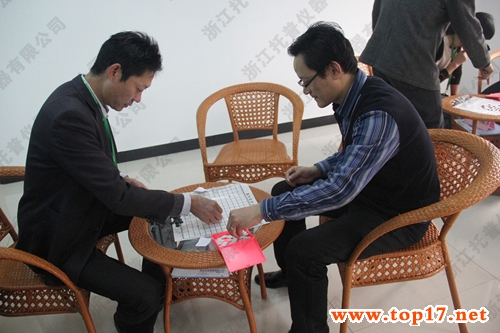 圖為:托普儀器張總和羅經理正在進行五子棋的比拼