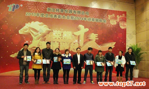 2013年1月24日,浙江托普儀器有限公司2013年度工作總結(jié)大會在海外海.納川大酒店隆重召開。經(jīng)過一上午的計劃總結(jié)大會后,下午迎來托普10周年之表彰大會。會議由銷售部張文超主持,表彰大會在奮進(jìn)的進(jìn)行曲中拉開了序幕。