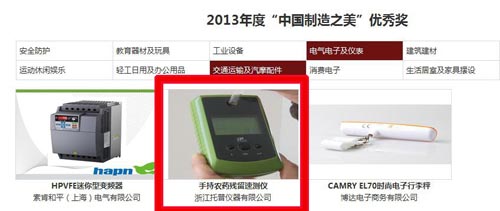 托普儀器手持農(nóng)藥殘留速測儀成功斬獲2013年度“中國制造之美”優(yōu)秀獎
