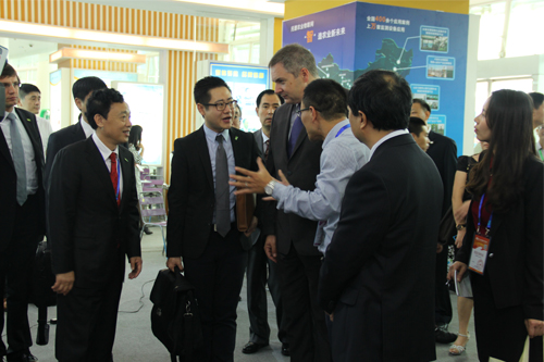 圖為:屈冬玉副部長和斯洛文尼亞副總理一行蒞臨托普展區(qū)