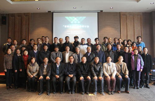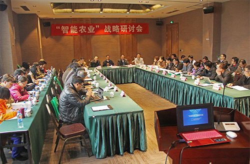 2015年11月27—28日,“十三五”“智能農業”戰略研討會在浙江杭州隆重召開。中國科學院孫九林院士、華南農業大學羅錫文院士、國家農業信息化工程技術研究中心趙春江主任、浙江大學生物系統自動化與信息技術研究所何勇所長、中國農業大學博士生導師李道亮教授、中國農業科學院信息所許世衛研究員等23位專家,農業物聯網產業技術創新戰略聯盟成員單位41位代表參加會議。