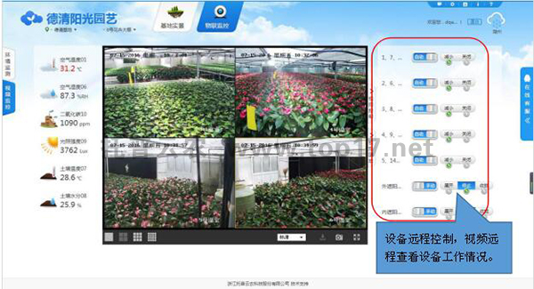⑦可接所有的環境、土壤、水質等傳感期,實現遠程控制溫室的風機等設備