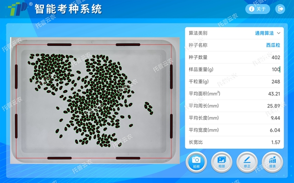 水稻考種分析系統也叫水稻考種分析儀,水稻自動考種系統,可以測量水稻、小麥、玉米、油菜、豆類、花生、芝麻、高粱等脫粒后的各種作物種子,快速獲取種子的數量、千粒重與平均粒型(包括長、寬、長寬比、周長、面積)等信息。主要應用于育種過程中,對育種材料千粒重及粒型參數的快速、準確提取,提高育種效率,為育種材料的篩選提供依據。