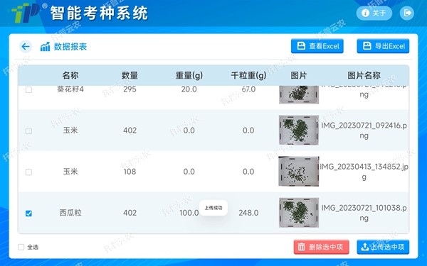 水稻考種系統適用于水稻種子考種分析,也適用于水稻、小麥、玉米、油菜、豆類、花生、芝麻、高粱等脫粒后的各種作物種子,可測量各種表面光滑的籽粒的數量、千/百粒重與平均粒型(包括長、寬、長寬比、周長、面積)。