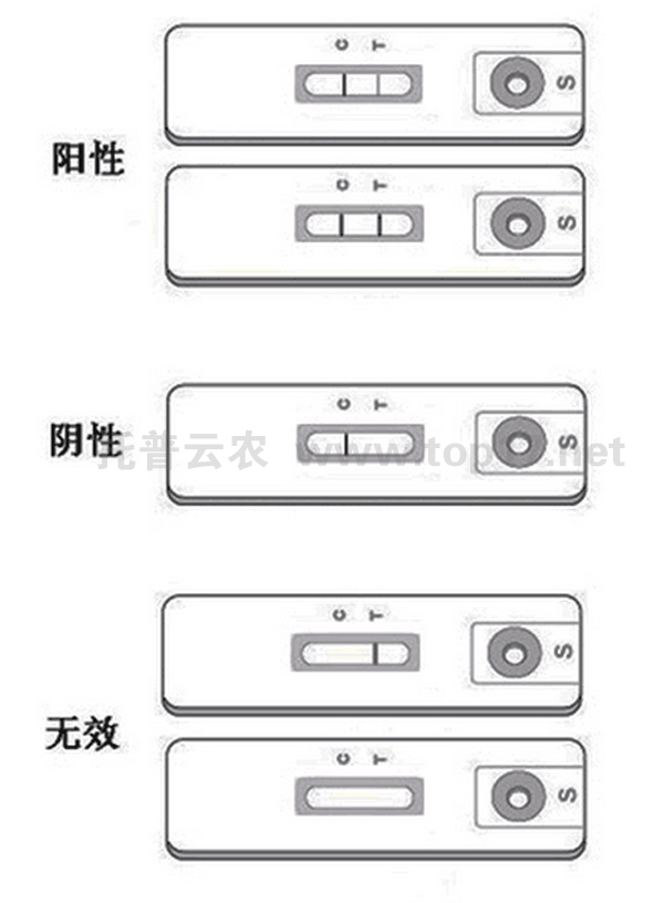 陰性(-):C 線顯色,T 線不顯色(測試線,靠近加樣孔一端);