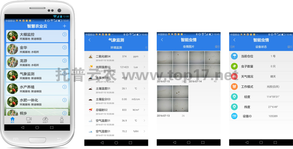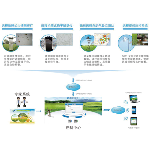托普農作物重大病蟲害數字化監測預警系統由蟲情信息自動采集分析系統、孢子信息自動捕捉培養系統、遠程小氣候信息采集系統、病蟲害遠程監控設備、害蟲性誘智能測報系統等設備組成,可自動完成蟲情信息、病菌孢子、農林氣象信息的圖像及數據采集,并自動上傳至云服務器,用戶通過網頁、手機即可聯合作物管理知識、作物圖庫、災害指標等模塊,對作物實時遠程監測與診斷,提供智能化、自動化管理決策,是農業技術人員管理農業生產的“千里眼”和“聽診器”。