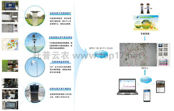 在農林業種植上,一些病蟲害的發生總是無法避免,雖然預防方法多種多樣,但常常因為不科學的做法而收效甚微。托普病蟲害監測預警系統由遠程拍照式蟲情測報燈、遠程拍照式孢子捕捉儀、無線遠程拍照式孢子捕捉儀、無線遠程自動氣象站、遠程視頻監控系統等組成,也叫植保信息化系統、病蟲害監測預警系統。
