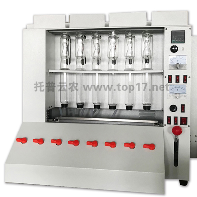 粗纖維測定儀是依據目前常用的酸堿消煮法消煮樣品,并進行重量測定來得到試樣的粗纖維含量的儀器,可以測定各種糧食、飼料、谷物、食品及其他農副產品中粗纖維的含量。